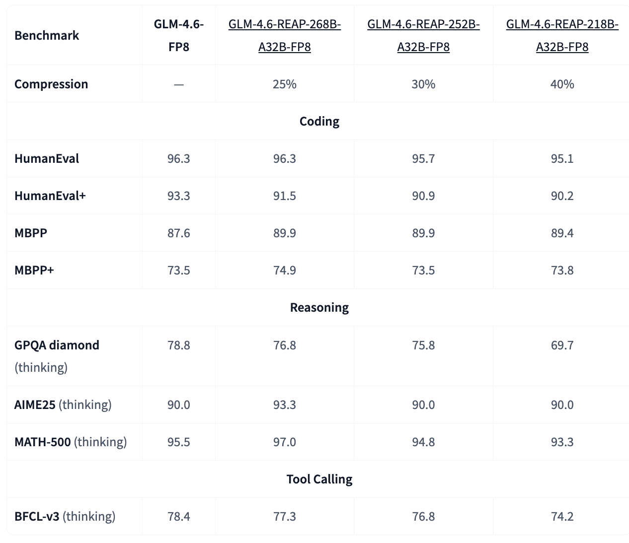 GLM-4.6-REAP-218B-A32B-FP8 by cerebras: While we wait for GLM-4.6-Air (and mini, as teased in this Interview from Chinatalk’s Jordan Schneider and Nathan with Zixuan Li from Zhipu), you can use pruned versions of the GLM-4.6 model.