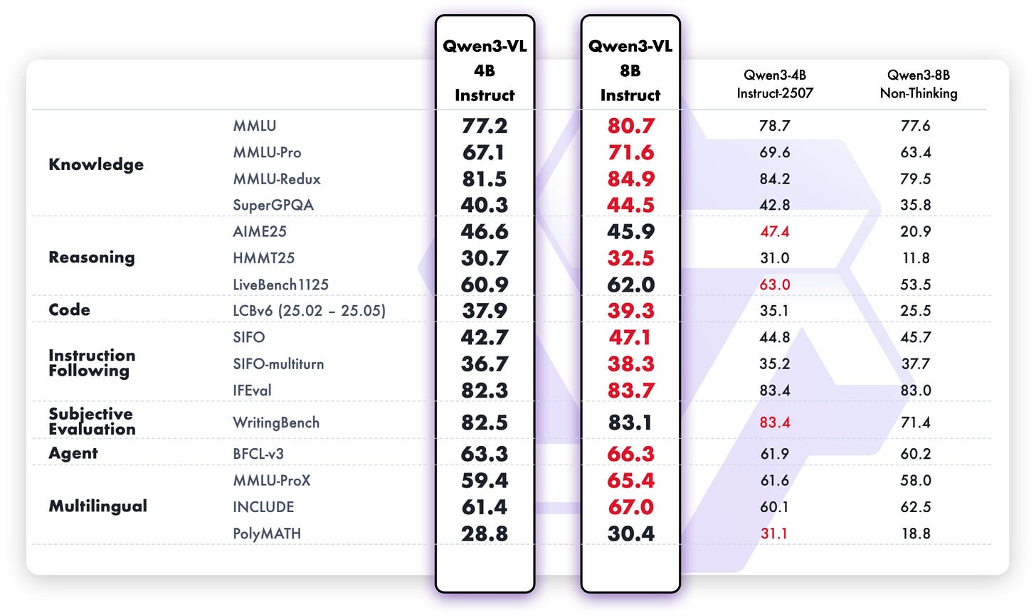 Granite, for at least the 3B variant, is roughly in the SmolLM3 quality range, being only surpassed by Qwen3 4B in terms of multilingual and instruction following capabilities. The tone of Granite 4.0 is refreshingly non-exciting compared to the sloptimized models recently (i.e. the trend across the industry for playful, emoji-filled, and often sycophantic models), making it feel like old Mistral models in a good way. Interestingly enough, they are also following Qwens lead and will release a separate reasoning model later in the year. We’ve heard many reports from people training models that hybrid reasoning — i.e. a toggle of thinking tokens on and off — adds a major complexity cost in training that lowers the peak performance of both modes. IBM debuted the hybrid thinking approach (togglable via prompts) very early on for open models, which was adopted by others later.Qwen3-VL-235B-A22B-Instruct by Qwen: The Qwen VL series finally gets its long-awaited and anticipated update with small (4B, 8B) dense and larger (30B-A3B, 235B-A22B) MoEs in both instruct and reasoning versions. We want to shine a special spotlight on the 8B variants: Their text benchmarks have also improved across the board compared to the initial 8B release — reinforcing our point on the challenge of hybrid reasoning. As the 8B versions did not get a 2507 refresh, these versions should be a no-brainer update and drop-in replacement if you were using Qwen3 8B (or are still using Llama3.1 8B).